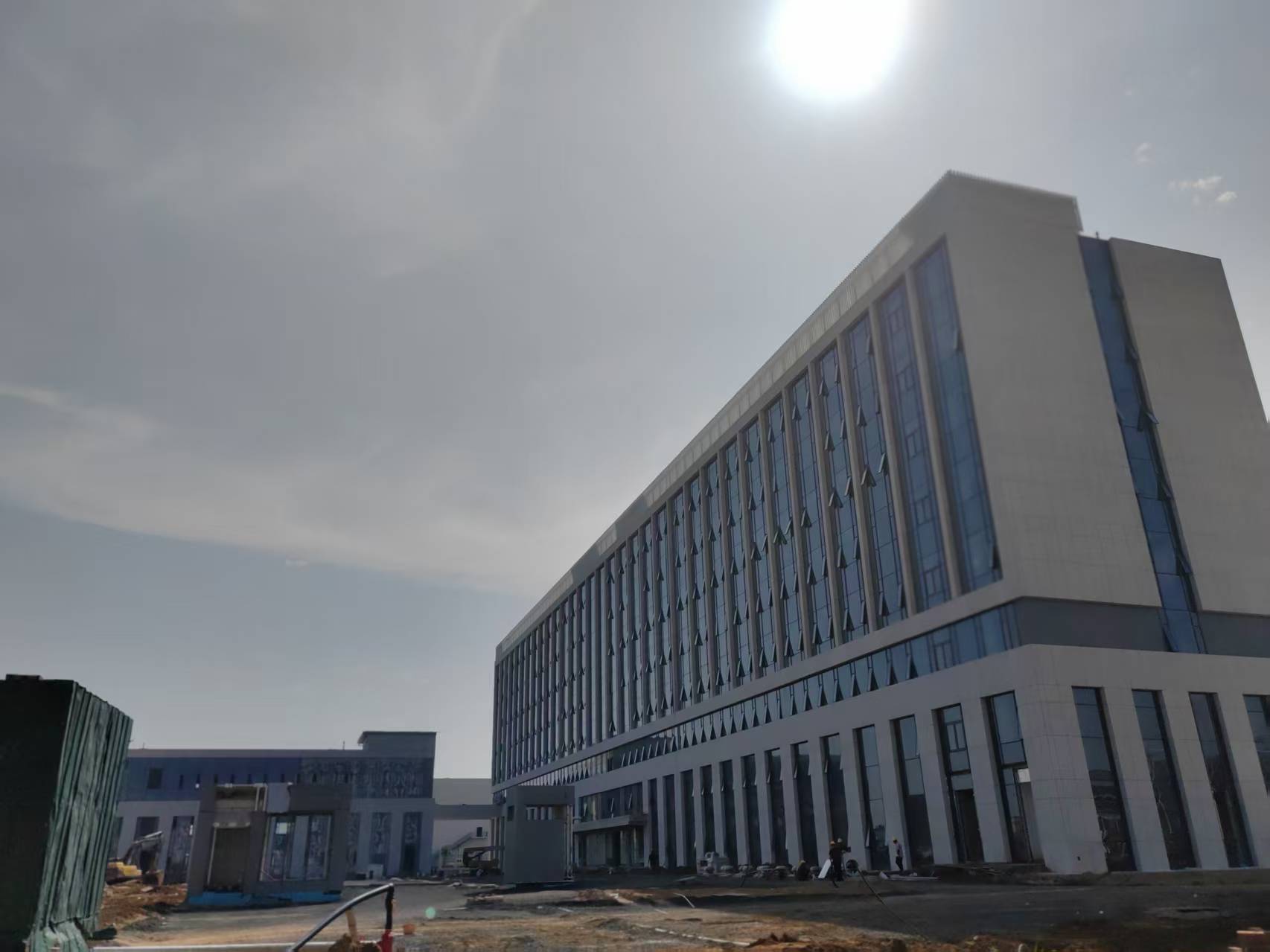 7月28日,城建分公司呼和浩特新機(jī)場航站區(qū)配套設(shè)施業(yè)務(wù)用房項目幕墻施工完成。