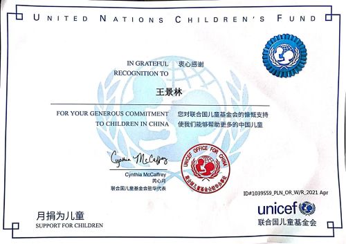 6月9日,聯(lián)合國(guó)兒童基金會(huì)致謝中國(guó)二冶優(yōu)秀青年員工王景林,對(duì)其多年來(lái)堅(jiān)持向聯(lián)合國(guó)兒童基金會(huì)捐款表示衷心感謝。