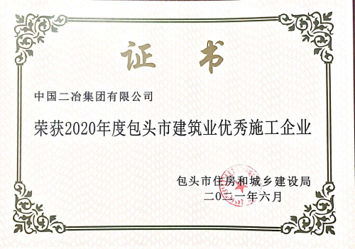 6月29日,包頭市住房和城鄉(xiāng)建設(shè)局(包住建建【2021】7號)公布了全市28家建筑業(yè)優(yōu)秀施工企業(yè)、66名優(yōu)秀建造師名單。中國二冶被授予“2020年度包頭市建筑業(yè)優(yōu)秀施工企業(yè)”榮譽(yù)稱號;甘肅分公司項(xiàng)目經(jīng)理張磊、鋼結(jié)構(gòu)分公司項(xiàng)目經(jīng)理田忠剛榮獲“2020年度包頭市優(yōu)秀建造師”榮譽(yù)稱號。