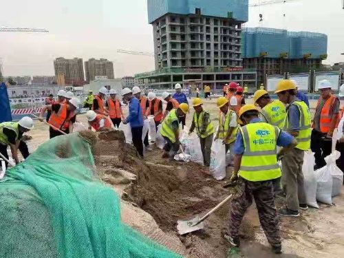 冶金分公司鄭州市鄭東新區(qū)如意東路便民服務(wù)中心EPC工程項(xiàng)目部積極配合中原公司、業(yè)主開展抗洪搶險(xiǎn)工作,保證施工現(xiàn)場人員及財(cái)產(chǎn)安全。