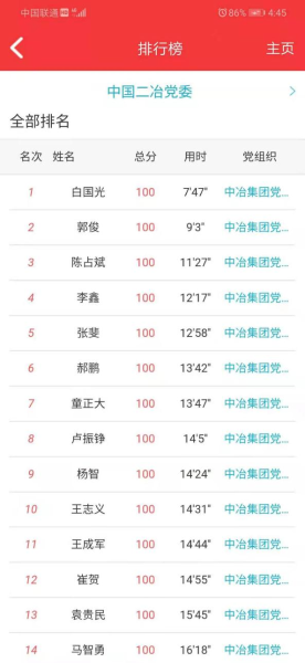 本次黨史知識競賽,內(nèi)容涵蓋了習(xí)近平《論中國共產(chǎn)黨歷史》、《毛澤東、鄧小平、江澤民、胡錦濤關(guān)于中國共產(chǎn)黨歷史論述摘編》、《習(xí)近平新時代中國特色社會主義思想學(xué)習(xí)問答》、《中國共產(chǎn)黨簡史》等黨史內(nèi)容。競賽依托五礦智慧黨建app平臺進行,競賽共300道試題,包括單項選擇、多項選擇。在競賽時間內(nèi)可以隨時參與答題。后臺會根據(jù)答題的正確率由高到低進行排列,正確率相同的,將已答題用時進行排序。在答題競賽中,每位黨員積極思考,認真答題,踴躍參與,不少黨員紛紛表示,通過這個知識競賽,使黨史、黨章、黨規(guī)都印在腦海里,理解也深刻。希望公司今后能多舉辦類似活動,提升黨員政治理論知識與黨員思想覺悟能力,爭做優(yōu)秀共產(chǎn)黨員。本次黨史知識競賽活動,公司共有1560名黨員干部踴躍參加,經(jīng)過激烈角逐,來自四川分公司的白國光以7分47秒的優(yōu)異成績?nèi)〉脻M分,獲得本次競賽活動的一等獎;來自市政分公司的郭俊等5名黨員獲得二等獎;來自華東分公司的王成軍等10名黨員獲得三等獎;來自甘肅分公司的高國義等30名黨員獲得優(yōu)秀獎。