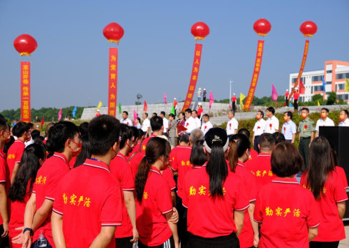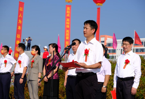 劉朝暉在致辭中首先代表縣委、縣人大、縣政府、縣政協(xié),向夜以繼日奮戰(zhàn)的中國二冶施工人員、項目指揮部工作人員和承建單位表示衷心感謝!廣大建設者克服了重重困難,歷經(jīng)了千辛萬苦,全體參與項目建設的同志們發(fā)揚“三牛”精神,吃苦耐勞,攻堅克難,奮戰(zhàn)1300多個日日夜夜,終于建成了一座占地400畝、學位6000個的現(xiàn)代化新高中,向全縣人民兌現(xiàn)了莊嚴承諾,也讓70萬永興人民充分感受到縣委縣政府致力于改善民本民生的堅定決心。他強調(diào),優(yōu)質(zhì)教育質(zhì)量的均衡發(fā)展一直是困擾當?shù)乜h鄉(xiāng)兩級教育事業(yè)發(fā)展的一個難題。今天新校區(qū)的揭牌意味著永興一中即將揚帆遠航,永興一中要以揭牌和開學為新起點,瞄準高標準,高質(zhì)量,高品位目標,提高教育質(zhì)量,辦出教育品牌,努力把學校創(chuàng)辦成管理一流,特色鮮明的義務教育標桿學校。