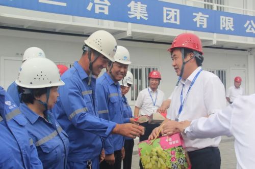 高文華首先對工作在一線員工們的辛勤工作表示感謝和崇高的敬意,聽取了項(xiàng)目負(fù)責(zé)人的工作匯報(bào),并與大家親切交談,詳細(xì)了解員工們的工作生活情況,鼓勵(lì)所有員工,增強(qiáng)集體榮譽(yù)感和責(zé)任心,用奮斗譜寫二冶建設(shè)新篇章,并為他們發(fā)放了月餅、水果等節(jié)日禮物,勉勵(lì)他們要不忘初心、牢記使命、勇?lián)厝?。高文華指出,在中秋和國慶“兩節(jié)”來臨之際,公司許多員工依然堅(jiān)守工作崗位勤懇奉獻(xiàn),正是“一天也不耽誤,一天也不懈怠”的企業(yè)精神,中國二冶才跑出了發(fā)展的“加速度”,公司對廣大員工及其家屬的辛勤付出與大力支持表示衷心感謝。